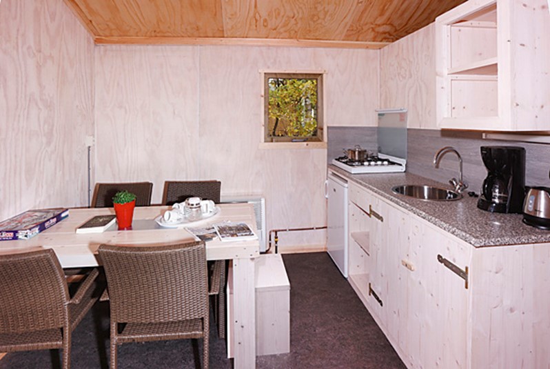 Aan de rand van een veld staan 3 unieke hikehomes. Een comfortabele trekkershut voorzien van een toilet, verwarming, 4-pitsgasstel, koelkast, koud en warm stromend water, picknicktafel en een overdekte veranda.