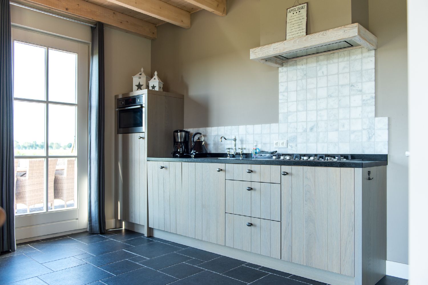 Boerderijwoning (geschikt voor 4-8 personen): Op de 1ste verdieping bevinden zich 4 slaapkamers met alle een ensuite badkamer. Op de begane grond is een grote woonkamer met open keuken aanwezig, deze is van alle gemakken voorzien. Verder is er een groot terras aanwezig waar u heerlijk buiten onder een schaduwdoek kunt zitten.