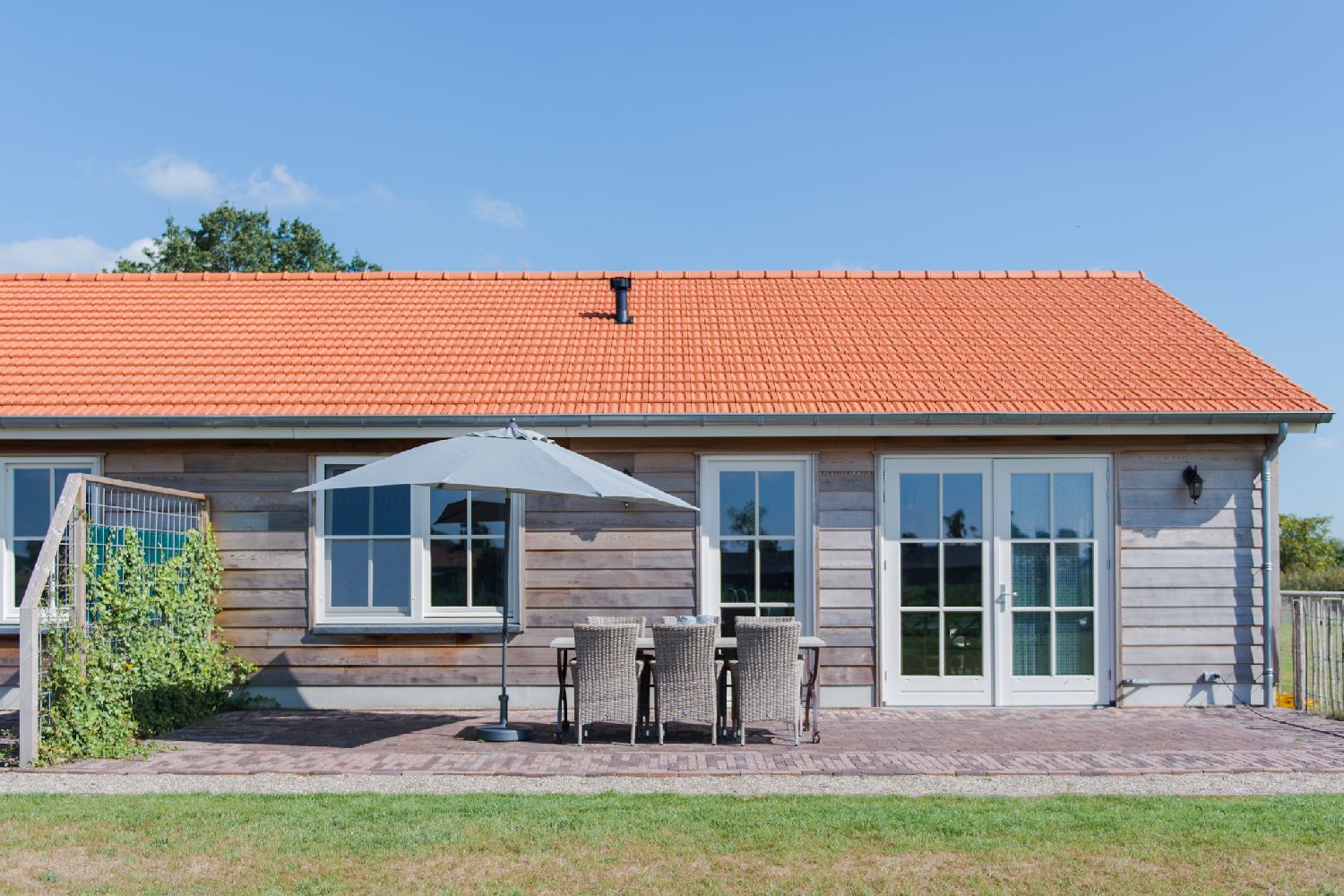 De Korenhof (geschikt voor 4-6 personen): Deze woning is gelijkvloers en beschikt over 3 slaapkamers, 1 toilet, 1 badkamer met inloopdouche en een bad, een grote woonkamer met keuken. Verder is er een groot terras aanwezig waar u heerlijk buiten kunt zitten.