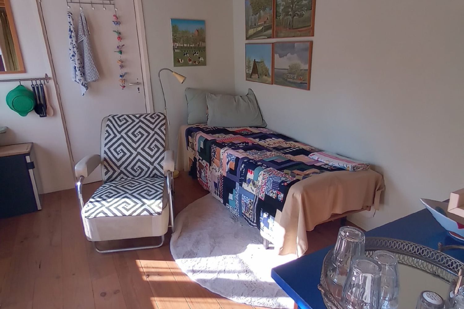 Slapen bij Saar is GEEN Bed&Breakfast, het huisje heeft twee kamertjes met in ieder een bed. Er is een douche, een toilet en een klein keukentje met magnetron, koffie- en theezetter en een klein koelkastje. Er is geen tv, maar wel mogelijkheid tot gebruik van WiFi.
