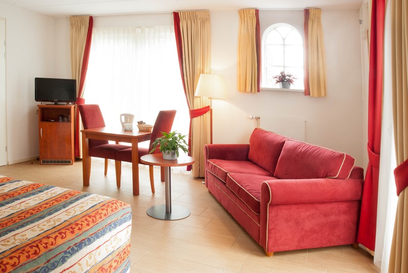 De appartementen zijn voor zien van 1 of 2 slaapkamers en een slaapbank voor 2 personen in de woonkamer, een badkamer met douche/toilet (1 met bad) en een woonkamer met eigen keuken.