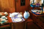 Het ontbijt kan aan de tafel binnen of op het terras geserveerd worden
