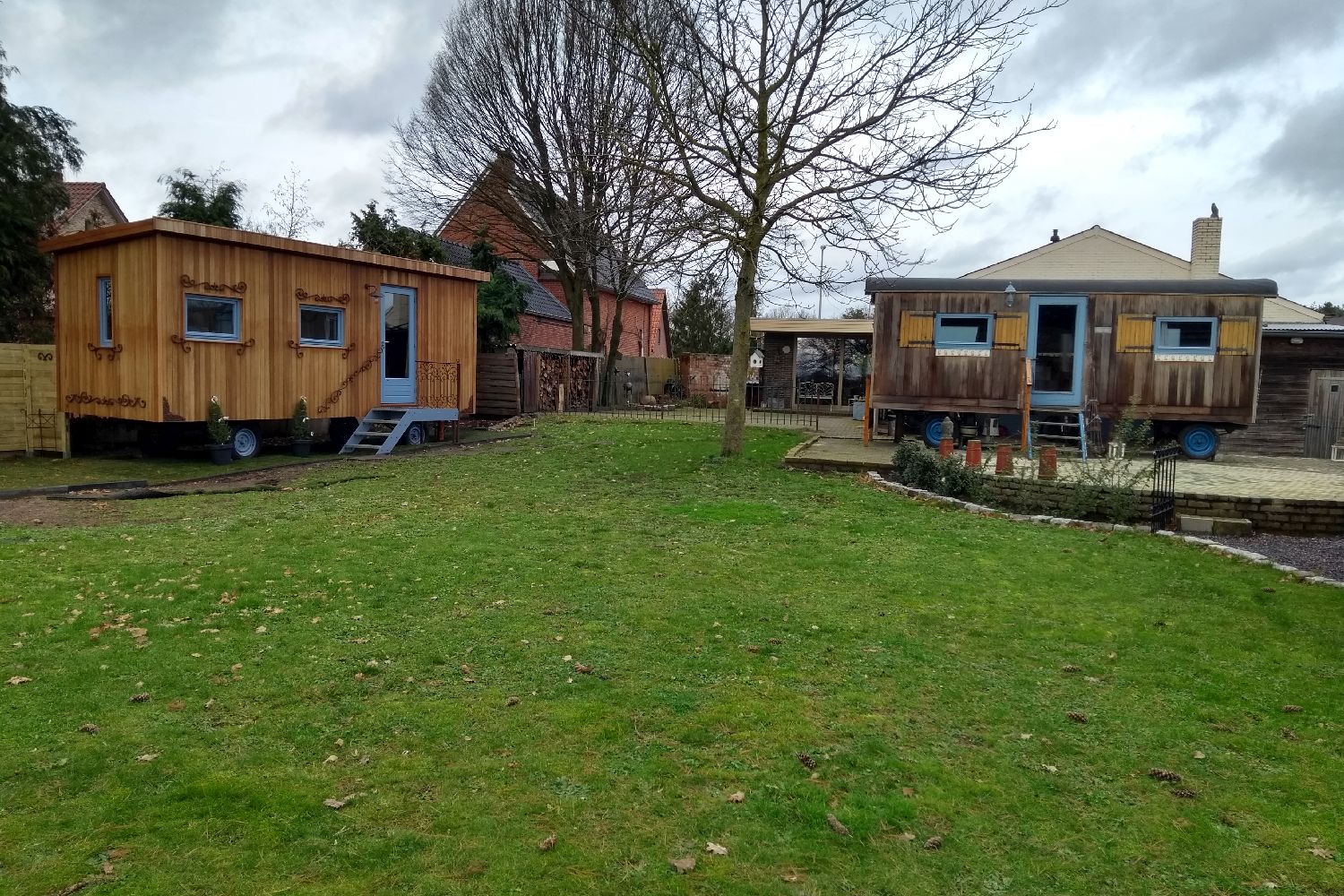 Er staan 2 originele volledig ingerichte droonwagens ieder geschikt voor 2 personen