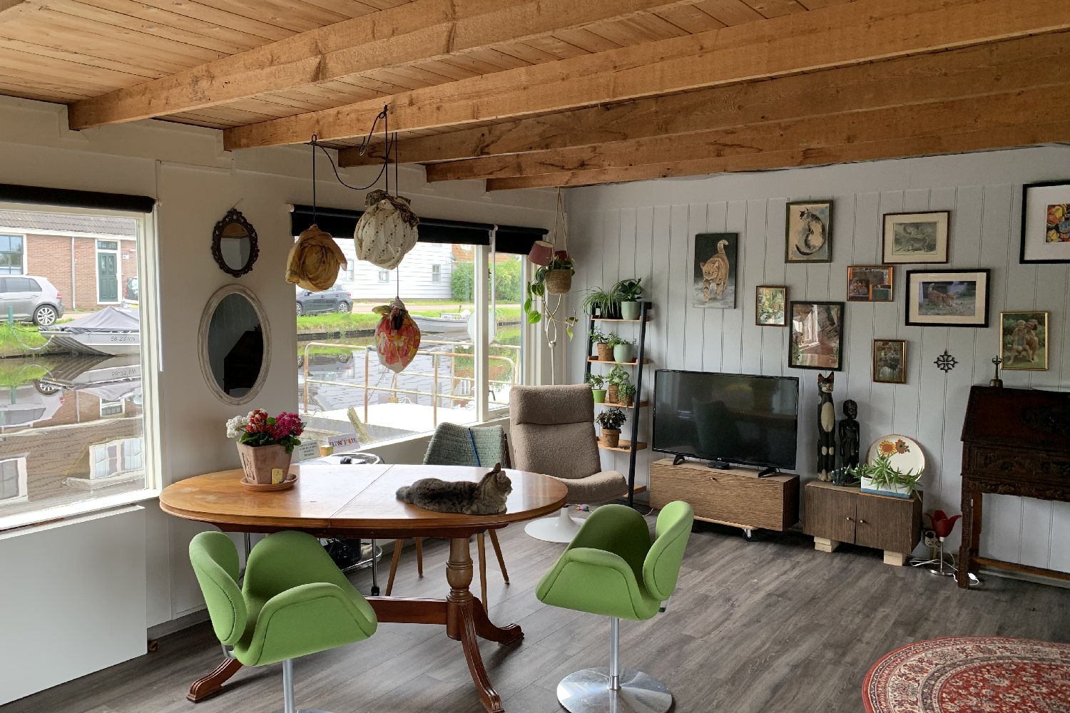 You will spend the night in a cozy room on a houseboat. After the (optional) dinner you have access to the entire ark. The resident lives in the back of the house.